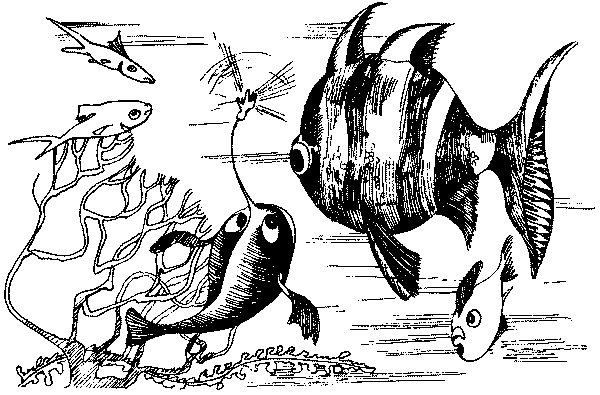 – Скажите, не могли бы вы помочь мне разыскать мельчайшие растения по имени водоросли? – обратился удильщик к пучеглазой маленькой рыбке с большими опущенными плавниками. И поспешно добавил: – Сам я из семейства удильщиков и специально приплыл наверх, чтобы познакомиться с ними.