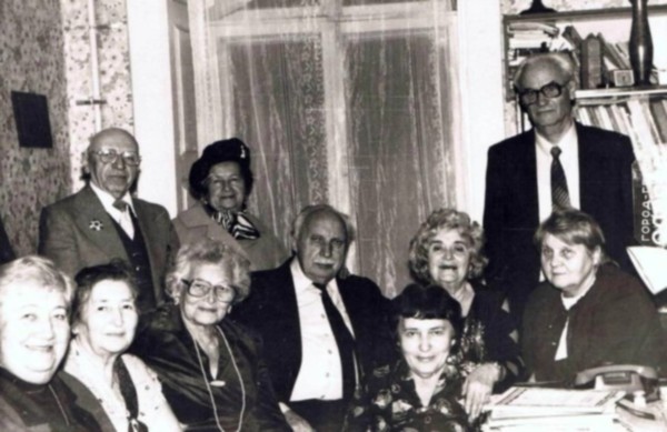 Сидят: Этя и Вениамин, мамина племянница Юля, Вадик, мама, товарищ Вадика по армии Толя Карякин, брат Юли Илюша. Стоят: мамин двоюродный брат Миля Симма с женой Любой и папа