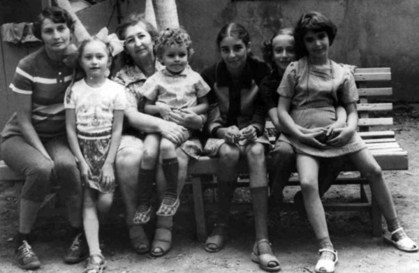 1-й план: Гарик, жена папиного брата Изи – Рива, мама с Юлечкой на руках, бабушка Сима. 2-й план: папин брат Изя, папа, Рита, Вадик (1972 г.)