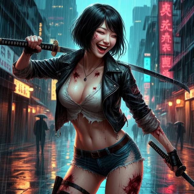 А потом снова ринулась в бой. На этот раз она не стала скрывать припрятанный пистолет и сразу же пустила его в ход. Звуки выстрелов перебили шум дождя. Но тогда я успел увернуться от пуль, всё-таки я был непростым человеком. Лезвие катаны разрезало водяные нити, протянувшиеся с небес на землю. Я уклонялся и от этих атак, чем сильно раздражал противницу.