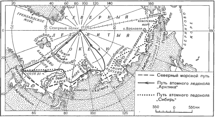 Пути атомных ледоколов «Арктика» и «Сибирь»