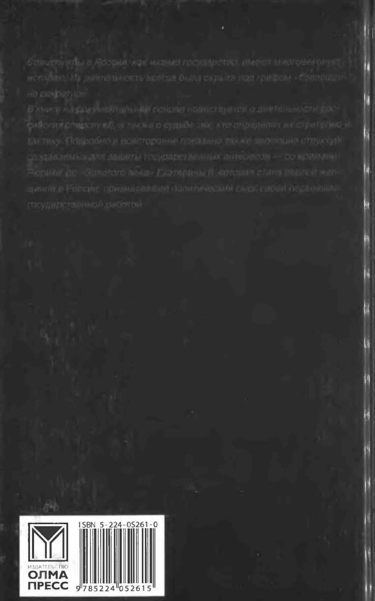 Менялись императоры, менялись руководители спецслужб, менялись, наконец, вывески, под которыми «прятались» политический сыск, разведка и контрразведка, но оставалось одно – подчинение, государственный страх, трепет перед «оком государевым». И все это было возможно только благодаря тому, что сам государь своей твердой рукой направлял деятельность спецслужб. Можно вообще говорить о том, что спецслужбы России (в этом они мало отличались и от спецслужб Запада, как, например, показано в работе Рууда) работали не на государство, но на государя. Впрочем, для того времени, которое мы рассмотрели в этой книге, и то и другое воспринималось как единое, неразрывное целое.