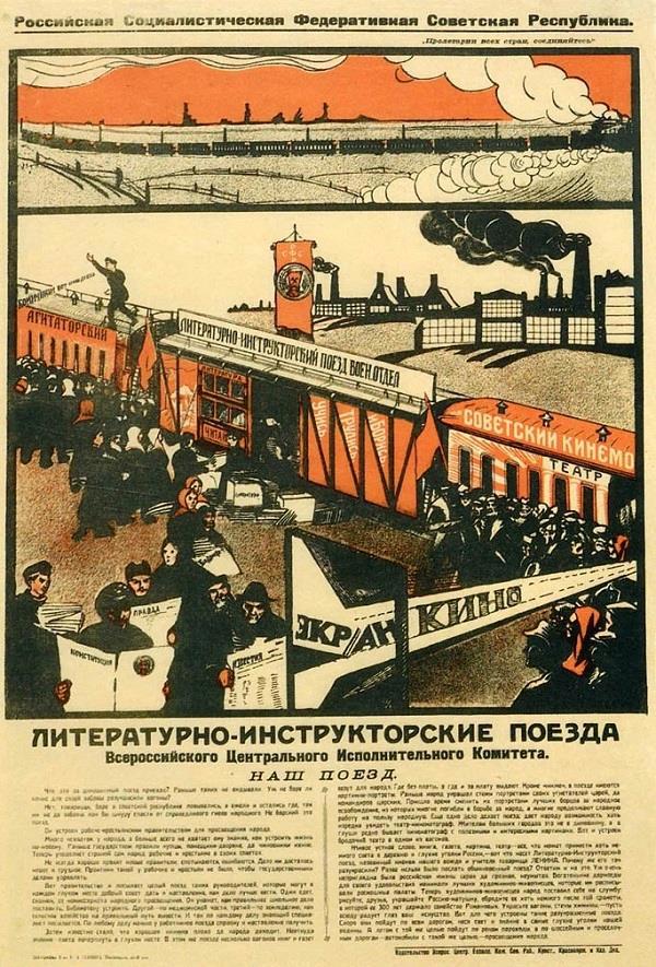 «Положение о литературно—инструкторских поездах» принято Президиумом ВЦИК в январе 1919 года, был даже создан отдел агитпартпоездов во главе с большевиком Яковом Буровым, который получил право прямого выхода на вождя и мог обращаться непосредственно к Ленину «ввиду важности стоявших перед ним задач».