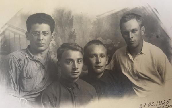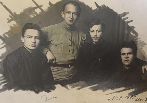 Да, именно родственник – с Иваном Апряткиным они стали свояками, женившись на однокурсницах, сестрах Сидоренко. Вот он, второй справа, во время учебы в МГА со своими товарищами.