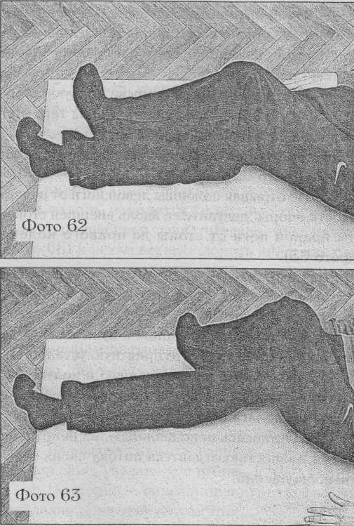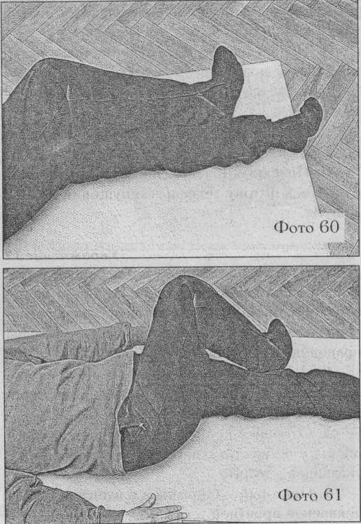 2. Не отрывая подошву от поверхности опоры, двигайте правую стопу вдоль внешней стороны левой ноги от стопы до колена (фото 61).