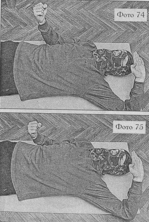 подреберья, захватите энергию в кулак (фото 74) и резко дерните локоть вниз, как бы вырывая что–то из области, расположенной над печенью и желчным пузырем (фото 75).