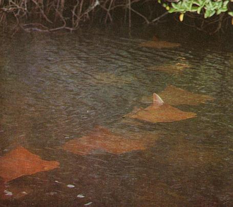 Я снимаю кадр за кадром, пока Карлос не трогает меня за плечо. Оборачиваюсь. Он показывает на молодые побеги мангров, нависшие над самой водой. Перевожу взгляд иа воду и вижу: прямо под ветвями застыла светло-серая «торпеда» длиной больше метра.