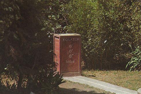 Действительно жаль. «Дом Солнца» был бы отличным дополнением к невыразительной каменной пирамиде, тем более в ее гипертрофированном виде. А может, во всем этом сказалась ревность некоторых ученых, оспаривавших мнение старого географа, который утверждал, что камень, стоящий в его дворе, более точно, чем монумент 1936 года, указывал линию экватора? Но даже если это и не так, «Камень Андраде Марина» заслуживает внимания, как и редкостный «Сад четырех сторон света».