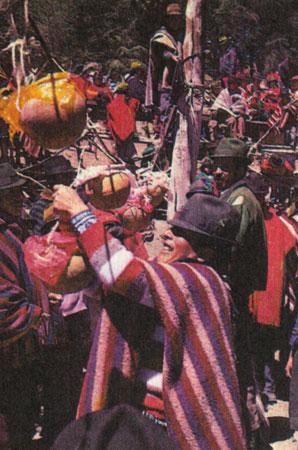 В былые времена отавало, принадлежащие к разным группам, завязывали между собой, следуя традиции, показные побоища за право занять в праздничные дни главную площадь. Инсценировки часто заканчивались настоящими драками, поножовщиной, и, в конце концов, власти их запретили. Поначалу эта мера была встречена индейцами с большим недовольством, а сегодня о драках и не вспоминают. Зато каждый год можно увидеть карнавальные шествия ряженых с участием "солдат", "мажордомов", "дьяволов".