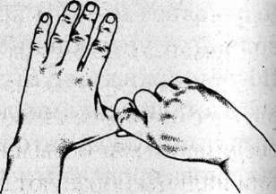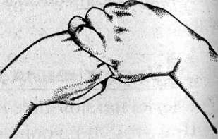 Проделайте это поочередно со всеми пальцами. Теперь захватите все пальцы сразу и дерните так, чтобы послышался хруст в запястье.