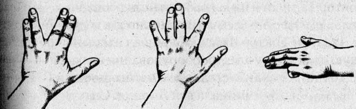 Теперь вам нужно научиться использовать все группы мышц по отдельности. Начнем со следующего. Приподнимите ладонь. Плотно прижав указательный палец К среднему, а мизинец к безымянному разведите средний и безымянный пальцы так, чтобы получилась буква «V». Снова соедините пальцы. Теперь одновременно отводите в стороны мизинец и указательный палец, оставляя Соединенными безымянный и средний. В этом положении пальцы образуют латинскую букву «W».