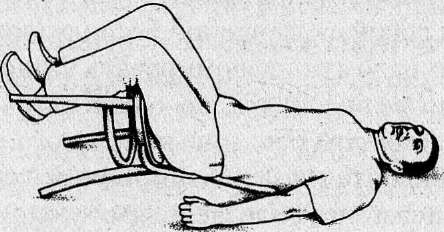 Сядьте на стул с высокой спинкой, прижмите подбородок к груди, раскачайтесь и упадите вместе со стулом назад. Падайте совершенно свободно и расслабленно.