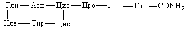 Из задней доли гипофиза ранее получали препараты питуитрин, адиурекрин и маммофизин, которые содержали сумму гормонов окситоцина и вазопрессина. Нарушение биосинтеза вазопрессина вызывает заболевание – несахарный диабет. Этот гормон увеличивает всасывание воды в извитых канальцах почек, повышает артериальное давление и суживает капилляры. Основным фармакологическим свойством окситоцина является способность вызывать сильные сокращения мускулатуры матки, особенно беременной. Он повышает также секрецию молока, усиливая выработку пролактина. Оба гормона имеют сходную кольцевую структуру и состоят из 9 аминокислот: