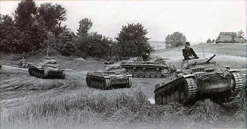 Группа Армий Центр по первоначальному плану должна была разгромить советские войска в Белоруссии, затем наступать на Москву. Третья танковая группа из девятисот с лишним танков в составе группы армий «Центр» наступает в Литве на Вильнюс. Увязнув в городских боях, в которых были потеряны семьдесят танков, Третья танковая группа обошла Вильнюс и моторизованные корпуса группы повернули на Минск, пытаясь обойти основные силы советского Западного фронта с севера. Однако построенный новый укрепрайон остановил продвижение немцев, в правый фланг которым ударили четыре сформированных в сороковом году танковые дивизии, в составе каждой триста пятьдесят пять танков Тэ Тридцать четыре и КаВэ Два и тридцать бронемашин разведки, мотопехота на броневиках и грузовиках, два полка реактивных установок. В каждом таком полку числятся одна тысяча четыреста четырнадцать человек, тридцать шесть боевых машин БээМ Тринадцать, а из прочего вооружения – двенадцать зенитных пушек калибра тридцать семь миллиметров, девять зенитных пулемётов ДШК и восемнадцать ручных пулемётов. В настоящий момент идет избиение немцев на этом участке.