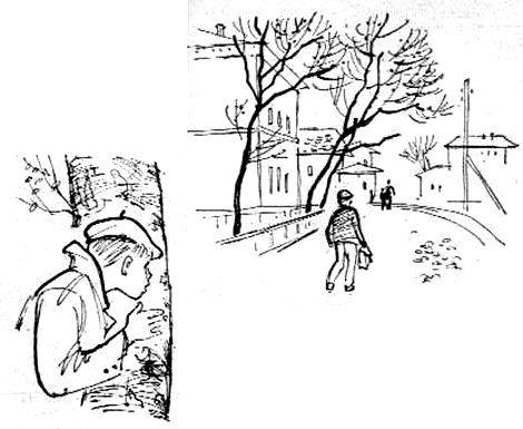После уроков отправился к нему домой, но никого там не застал. Встретил я Витьку случайно на трамвайной остановке.