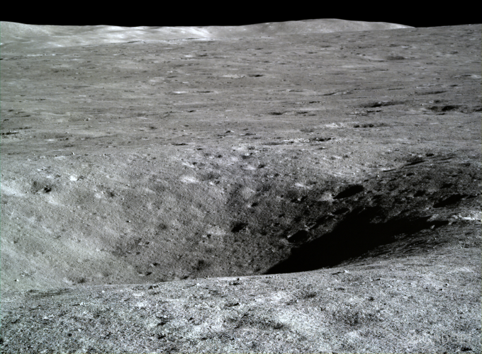 Блики от солнечных лучей и сильное освещение мешают разглядеть мелкие подробности. В километре от нас неслышно упал метеор. Все почувствовали небольшой толчок. Поднятая падением пыль стояла почти целый час, пока мы гуляли около небольших кратеров.
