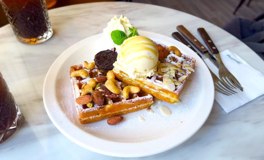Заказали себе кофе с десертом. Вчера он нам здесь очень понравился. Официант принёс всё через пять минут...