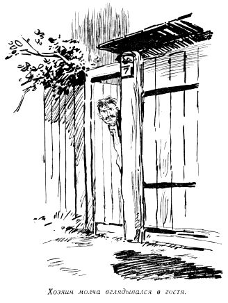 Вскоре Сударев услышал за забором хрипловатый мужской голос, успокаивающий собаку. Лай прекратился, и калитка приоткрылась. Искоса, не поворачивая головы, Сударев увидел, как через толстую доску порога перешагнула и остановилась нога в высоком сапоге. Сударев глянул на высунувшееся лицо, встал, подошел к калитке. Хозяин стоял, всматриваясь в гостя. Когда Сударев подошел вплотную, рот хозяина под рыжими усами беззвучно раскрылся.