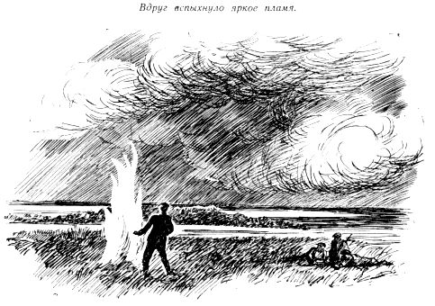 Алонов не мог объяснить себе причину вспышки. Трава, по-видимому, загорелась случайно, не по воле бандитов. Однако степная трава загорается не так легко. Степь не имеет такого плотного ковра, такого толстого слоя мха, как северные леса. На севере в засушливое лето для пожара довольно одной искры из паровозной трубы… Алонов постарался приметить высокую залежь (так называют особенно густую траву), около которой появился дым.