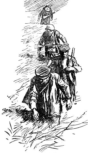 Впереди шел низкорослый, рядом с тем, усатым. За плечами всех четверых висели ружья в чехлах. На спинах были сильно опустевшие мешки.