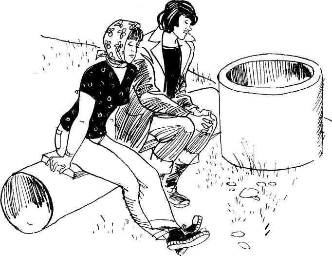 Игорь положил на ржавую трубу дощечку. Сели. Вокруг валялись прутья, мотки толстой проволоки, стояли высокие железобетонные цилиндры. «Подходящее место для объяснений! Представим, что это цветы и деревья, а пыль на дороге – река».