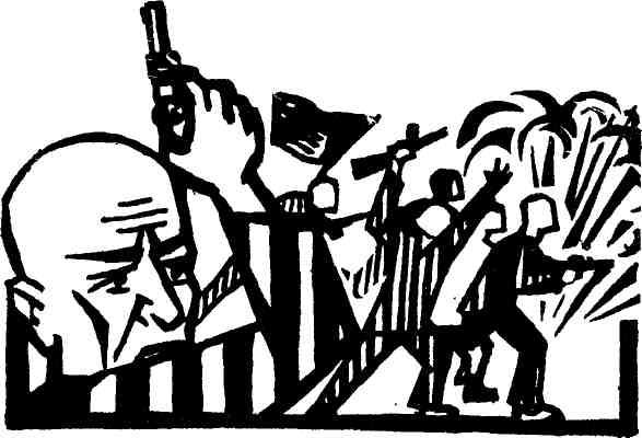 Мне со своего места видно, как по каменной ограде с независимым видом прогуливается мой верный Ленчик. Затихшая от неожиданности толпа опять начинает волноваться. Опять раздаются отдельные голоса, возбуждая колеблющихся, щелкают затворы винтовок.