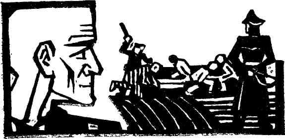 Мы в малом лагере. Карантинные бараки, или, как их называют, «блоки», отгорожены от основного, большого, лагеря колючей проволокой. Это вместительные помещения сборно-щитовой конструкции, до предела набитые самой разношерстной толпой. Раскрытые настежь двери в противоположных концах здания, несмотря на постоянные сквозняки, не в силах очистить спертый воздух. Днем тусклый свет проникает сверху из небольших окошек, вделанных в устроенный над крышей световой фонарь. Все здесь напоминает, больше складское помещение или мастерские, чем жилье. Вдоль стен четырехъярусные нары вертикальными перегородками разделены на клетки. В каждую клетку ложатся по 6—7 человек головами к среднему проходу, для удобства подсчета «поголовья». Вдоль всего прохода длинные столы и деревянные скамейки.