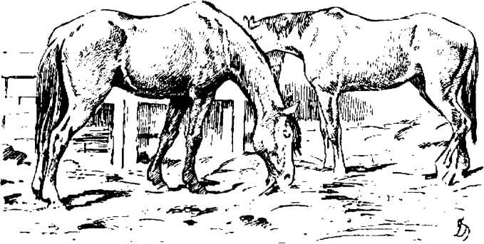 Признаки больной лошади следующие: не выедает корма, вялая, глаза мутные, блеск шерсти пропадает. Лошадь оглядывается на свой живот, иногда он раздут, лошадь стонет, скребет передними ногами, валяется, не может испражняться, не может мочиться, расставляет задние ноги, машет хвостом, выгибает спину, кашляет, из носу появляется истечение. Во время водопоя часто вода истекает через нос. Если что-нибудь из этого замечено, а также и при других признаках, когда будет замечено, что с лошадью не ладно, нужно сейчас же обратиться к ветфельдшеру или к ветврачу.