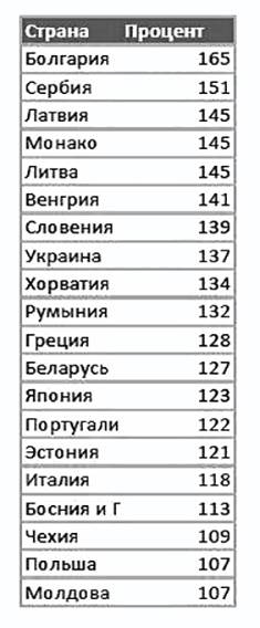 В первой таблице показаны страны, в которых соотношение числа умерших к числу рождённых больше 100%, т. е. в стране уменьшается численность населения за счёт вымирания. Кроме Японии остальные страны европейские. Любопытно, что в их числе все русофобские страны: Латвия, Литва, Украина, Эстония, Польша. Бог, что ли, наказывает?