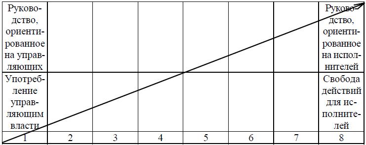 В 70-е гг. ученые Гарвардского университета Р. Танненбаум и В. Шмидт предложили рассматривать стиль руководства в некотором континууме, начинающемся на авторитарном полюсе и заканчивающемся на демократическом (см. рис. 4.1).