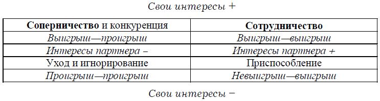 1. Соперничество и конкуренция. В этой стратегии партнер дистанцируется, тесного взаимодействия с ним не происходит. Руководитель действует авторитарно, абсолютно уверенный в своей правоте, подавляя интересы другой стороны. Партнер в этом случае ощущает себя проигравшим, а это может стать источником будущих конфликтных ситуаций, обусловленных борьбой партнера за свои права.