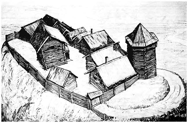 Рис. 14. Феодальный замок-усадьба Воищина на Смоленщине (реконструкция Г.В. Борисевича).
