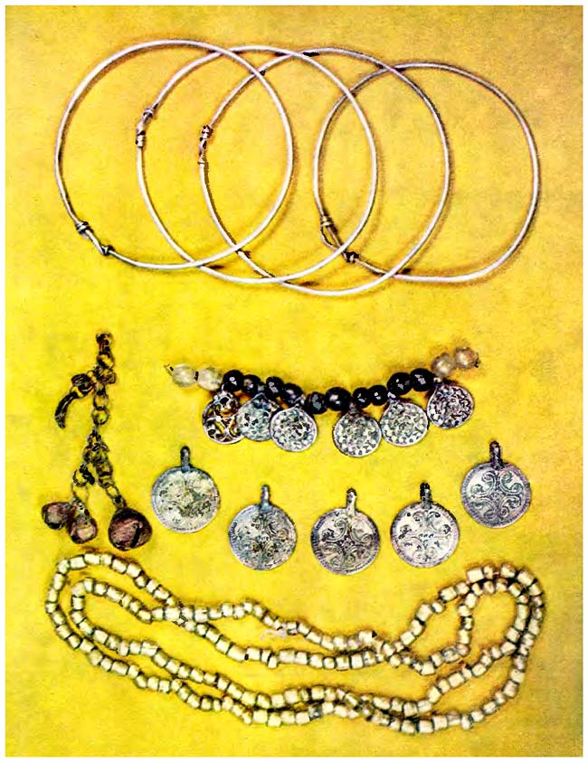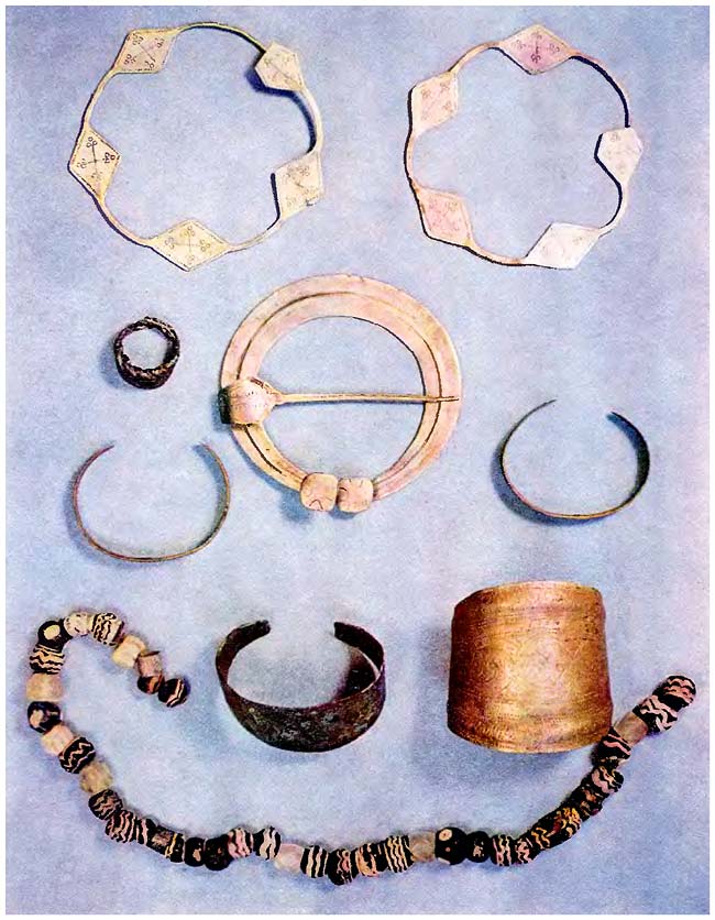 Украшения кривичей XI в. из смоленских курганов Бочарово, Волочек и Колчино.