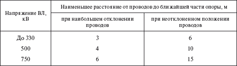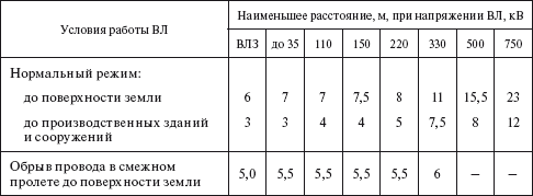 до ближайших частей производственных, складских, административно-бытовых и общественных зданий и сооружений (кроме электрических станций и подстанций) при неотклоненном положении проводов: 20 м – для ВЛ 330 кВ; 30 м – для ВЛ 500 кВ; 40 м – для ВЛ 750 кВ.
