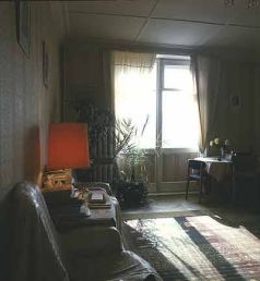 Илл.27. Разница между белым и черным за счет различия в величине освещенности снаружи и внутри помещения: внутренность комнаты кажется почти черной, цвет ощущается только в пятне света от люстры на потолке.