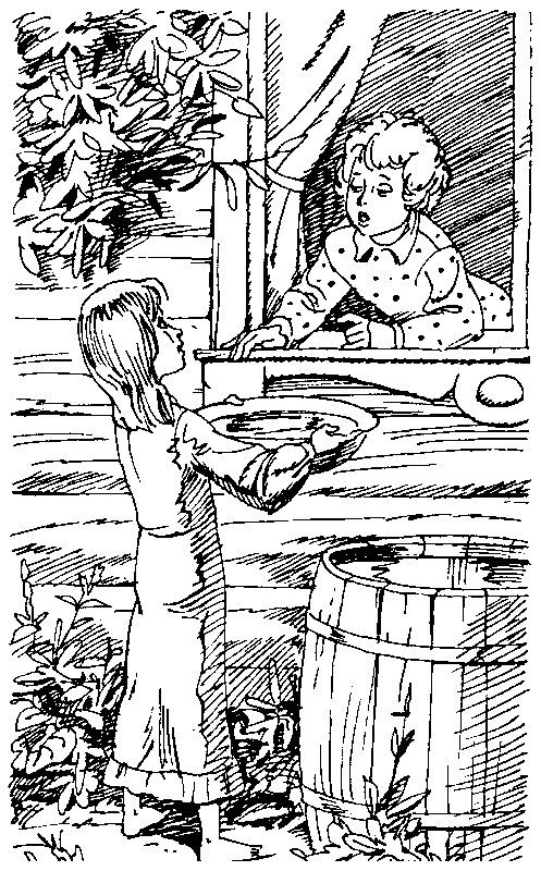 – Вы не пустите меня в дом? За что же такая немилость? – удивляется гость, глядя на обеих девочек.