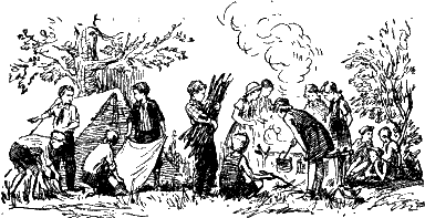 Васек нашел место для палаток. Ребята захлопотали. Наспех натянули палатки. Синицына, выбранная поваром, загремела котелками, подгоняя кострового – Мазина. Петя Русаков уже готовил площадку для костра. Санитарка Валя Степанова пошла искать родниковую воду для питья.