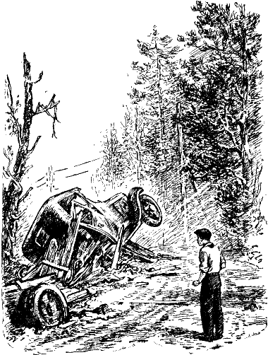 Под самым лесом тяжело и бездыханно лежал разбитый грузовик – это была куча железа; вздыбившаяся кабинка с передними колесами прикрывала разбитое в щепы дно машины. Неподалеку виднелась невысокая свежая насыпь, на ней еще не успела обсохнуть глина; рядом были заметны следы ног, валялась старая лопата…