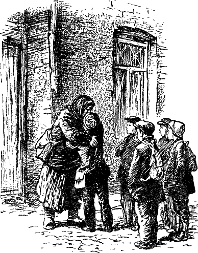 Девочки оставляют его и, часто оглядываясь, бегут дальше.