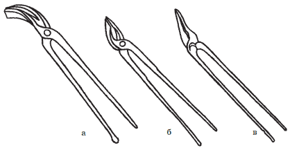 Рис. 10. Кровельные клещи: а – полукруглые; б – кривые; в – прямые