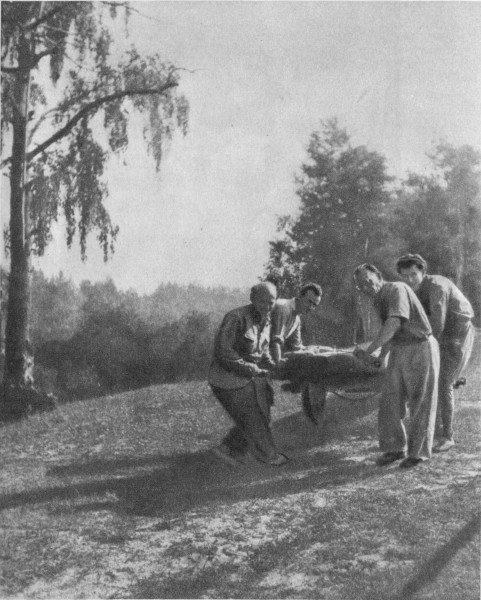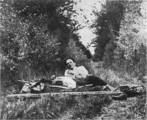 Р. И. Фраерман и К. Г. Паустовский с друзьями в районе реки Пра.