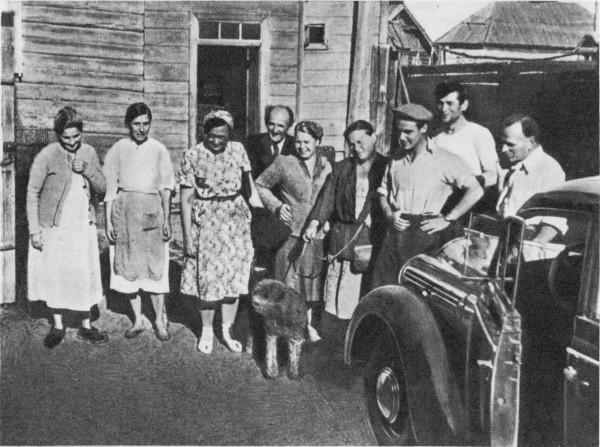 Р. И. Фраерман и К. Г. Паустовский среди солотчанцев. 1947 г.