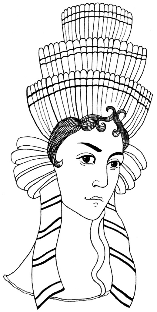 Спектр дамских причесок был довольно широк – от гладких, со строгим узлом на затылке, называемым «узлом смирения», до замысловатых сооружений высотой более полуметра.