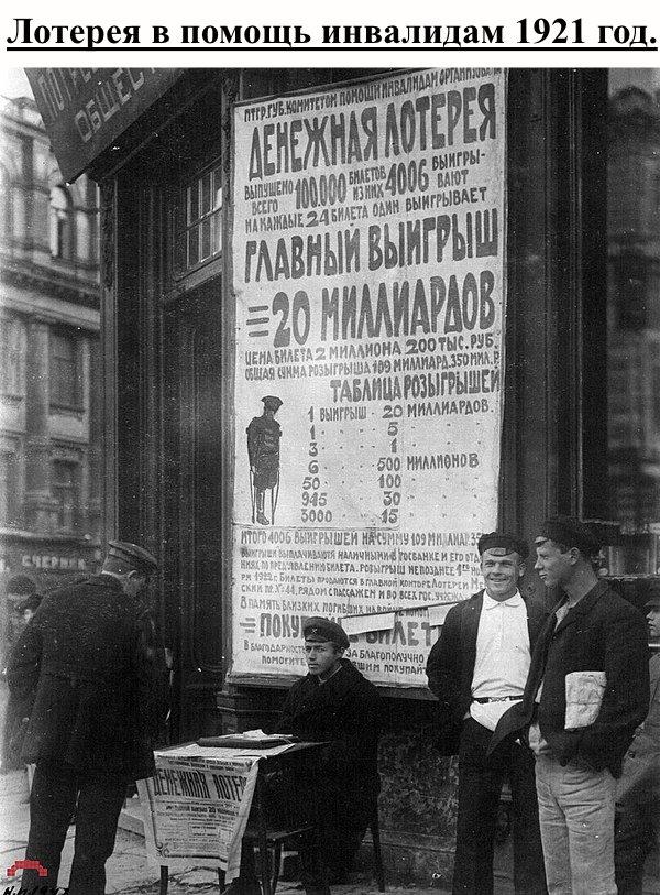 [1] С приходом советской власти, в 1918 году лотереи были объявлены буржуазным пережитком прошлого и запрещены декретом Совнаркома, но вскоре в связи с большим неурожаем и финансовыми трудностями, в 1921 году было принято решение восстановить их проведение.
