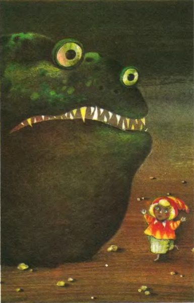 Тоді розтулилася велетенська пащека і звідти викотилися хвилі реготу.
