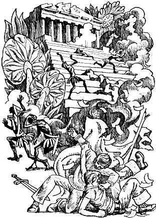 Я, как коршун, упал из поднебесья на каменный форт, дал с пятнадцати метров из всех своих дюз, и остров Гарантии содрогнулся от взрыва запрятанных в скалу арсеналов. Горб огня, дыма и каменной пыли вырос над островом, и, когда он рассеялся, я увидел, что край скалы, на котором был выстроен форт, весь осыпался и съехал в воду, помутневшую и все еще шипевшую от щебенки.