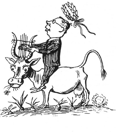 Шарж на Николая Заболоцкого, автора поэмы „Торжество земледелия“. Художник Б. Малаховский. 1930-е гг.