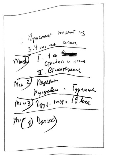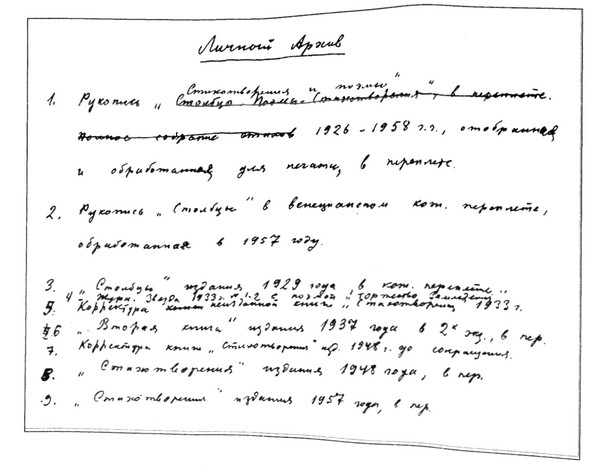 Рукописный листок Заболоцкого с наброском будущего литературного архива. 1958 г.
