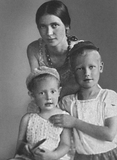 Жена Екатерина Васильевна с детьми Наташей и Никитой во время ссылки. Уржум. 1939 г.