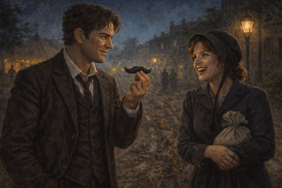 Я приложил усы к лицу, мельком глянув в лужу под ногами, где отражение было смутным и неровным.